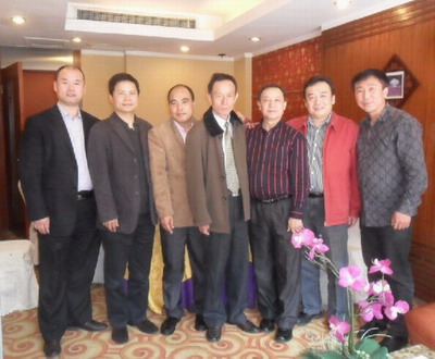 中华姓氏网(万家姓)报道 2012年3月23日,中华柳氏宗亲联谊会发起人、东方文化馆秘书长柳哲偕一位柳氏企业家到深出差,受到中华文化促进会副主席、中华邱氏宗亲联谊总会会长邱家儒先生热情接待,中华姓氏网(万家姓)总裁房恒贵、全球任氏宗亲会副主席、深圳亚皇传媒股份有限公司 董事、副总经理任晓华应邀参加了当晚的座谈。次日,在深的柳氏族人柳龙川先生又请柳哲一行吃早茶,房恒贵、任晓华两位及深圳儒学研究会会长、山东菏泽曹国文化研究会副秘书长曹景官、深圳某公司总经理任光池(任正非侄)应邀作陪。两次会谈中,大家都对姓氏文化的历史、文化、情感与经贸合作价值进行了探讨。任晓华先生并向在场的朋友赠送了几幅他的好友、毛泽东的特型演员、毛体书法家宋晓飞的作品。